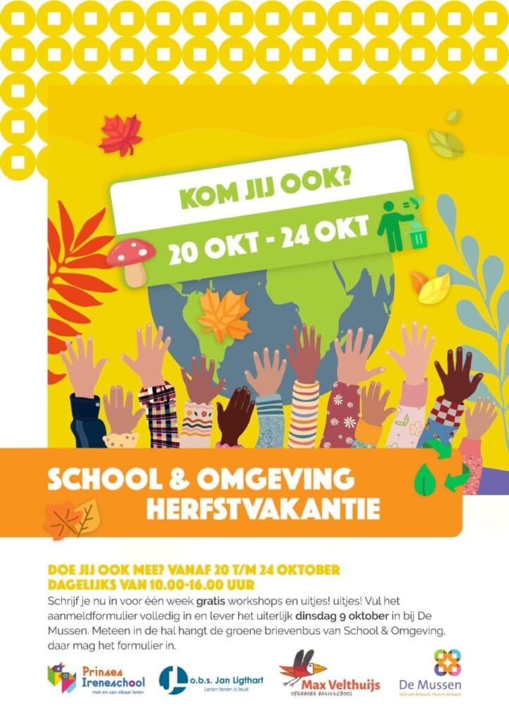 Doe ook mee met School en Omgeving tijdens deze herfstvakantie! Elke dag doe je twee leuke en spannende activiteiten en we gaan zelfs op uitje! Kunst maken, Muziek, Techniek of Sport, alles is mogelijk!