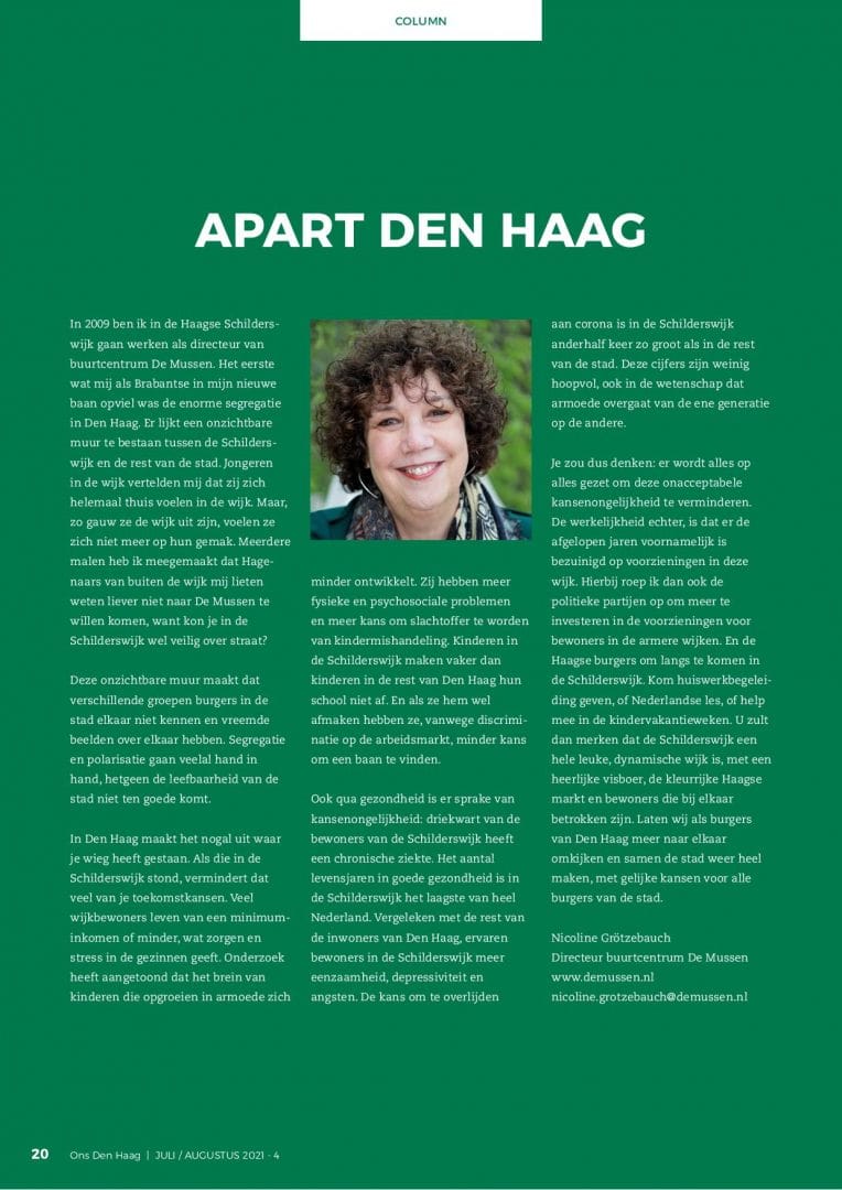 Voor “Ons Den Haag”, het magazine van de Vrienden van Den Haag, schreef Nicoline Grötzebauch een column.