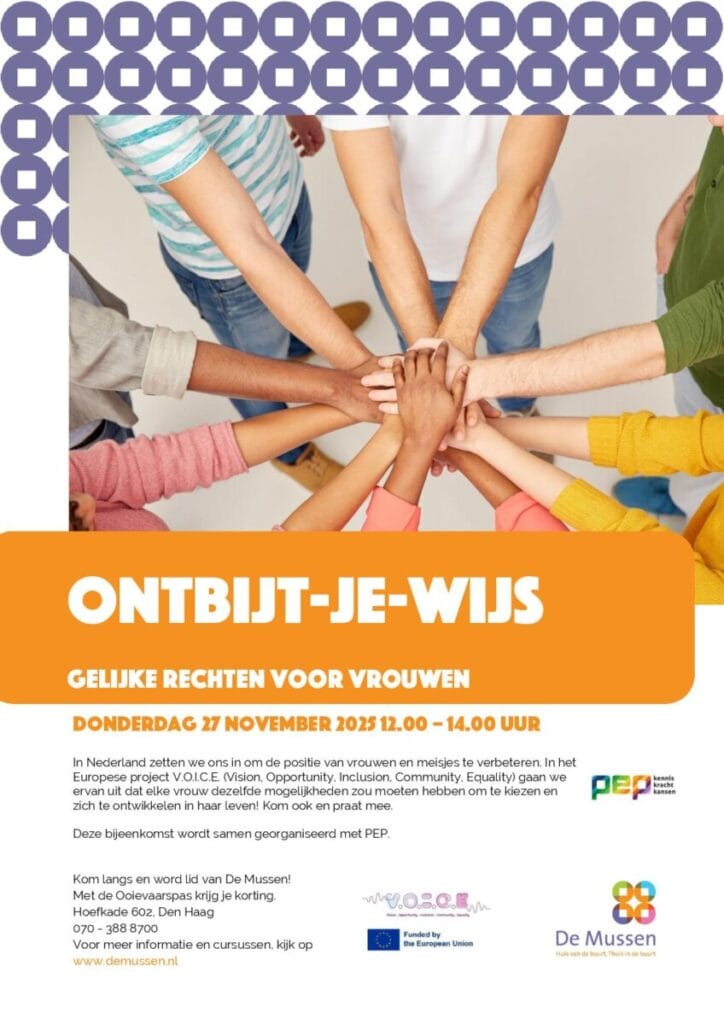 Gelijke rechten voor vrouwen, ons onderwerp op donderdag 27 november. Kom ook en praat mee!