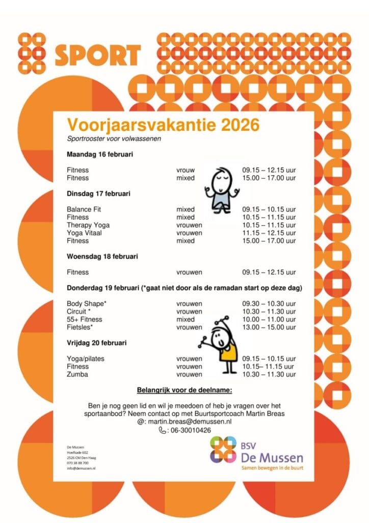 Er kan tijdens de Voorjaarsvakantie heerlijk gesport worden! In het rooster hieronder staan alle mogelijkheden.