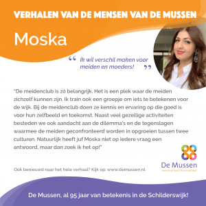 Inmiddels geeft ‘juf’ Moska haar kennis al tien jaar door bij De Mussen in de Schilderswijk. “Hier heb ik ruimte gekregen om mezelf te zijn en mijn eigen kracht in te zetten.” Die ruimte en kracht gunt ze de meiden en vrouwen waarmee ze werkt ook.